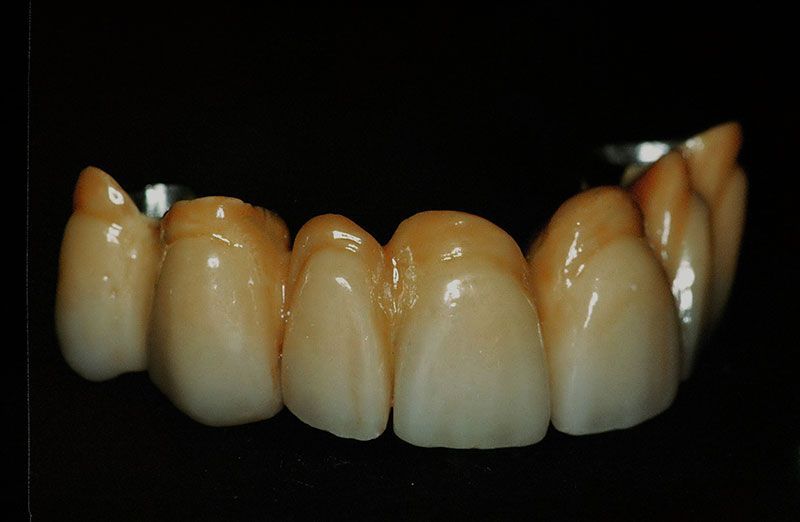 Posteriormente, aplicamos cerámica de alta calidad sobre estas estructuras metálicas, logrando un acabado estético natural y duradero que satisfaga las expectativas de tus pacientes.